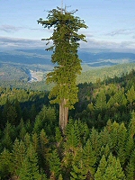 Hyperion : l'arbre le plus haut du monde Le nom du parc provient du séquoia fiche info à feuilles d'if, appelé en anglais California Redwood (redwood = "bois rouge", nom qu'il doit à son écorce rouge foncé). Les séquoias à feuilles d'if font partie des plus grands arbres de la planète. Le record de hauteur est détenu par un arbre âgé de 700 à 800 ans, baptisé "Hyperion" (du nom d'un titan de la mythologie grecque), qui fut mesuré en 2012 à 115,72 mètres (l'éqiovalent d'un immeuble de 35 étages). Il fut découvert en août 2006, mais son emplacement exact n'a pas été révélé au public afin de ne pas perturber l'écosystème de la forêt environnante. On sait seulement qu'il se trouve dans un secteur reculé, dans la partie annexée au parc en 1978. Malgré sa hauteur, son diamètre n'est "que" de 4,57 mètres à hauteur de poitrine. D'autres spécimens dans le parc dépassent les 100 mètres de hauteur, et une poignée dépasse même les 110 mètres, comme "Helios" (114,58 mètres en 2010) et "Icarus" (113,14 mètres en 2010). Cliquer sur l'image pour l'agrandir. |