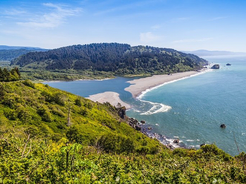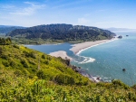Klamath River Overlook Ce point de vue domine de près de 200 mètres l'estuaire de la rivière Klamath qui se jette dans l'océan Pacifique. De nombreux californiens viennent observer sur ces falaises la migration des baleines à la fin de l'été. On peut également apercevoir au loin des dauphins. Otaries et phoques se reposent souvent sur les plages ou sur les îles rocheuses qui parsèment le littoral. Cliquer sur l'image pour l'agrandir. |