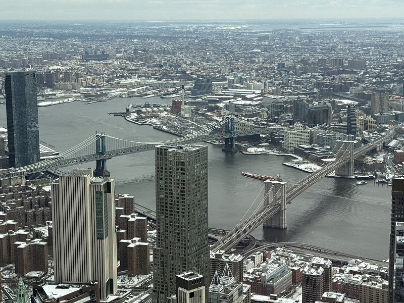 One World Observatory spoiler ! Ouvert depuis le 29 mai 2015, One World Observatory est la plus haute plateforme d'observation accessible au public de la ville. Situé à 381 mètres de hauteur, ce point de vue offre évidemment un panorama à couper le souffle (jusqu'à 60 kilomètres à la ronde par temps clair), même s'il n'offre pas de terrasse extérieure. Pour l'atteindre, vous passerez par un premier couloir montrant les fondations de la tour, puis par un second où sont projetés les portraits des ouvriers qui ont participé à sa construction. Vous pourrez ensuite accéder aux ascenseurs (les Sky Pods, d'une capacité de 15 personnes), dont les parois sont recouvertes d'écrans, donnant l'impression d'être dans un ascenseur vitré. Sur ces écrans est projetée un original film en timelapse vidéo Youtube montrant l'évolution du paysage urbain de New York depuis sa création jusqu'à la fin de la construction de la tour. On commence au 16ème siècle alors que Manhattan n'est encore qu'une zone de marais et de forêts. Au fur et à mesure de la montée, les années défilent : les premières maisons commencent à sortir de terre à la fin du 17ème siècle, puis au milieu du 19ème, c'est au tour des premiers buildings et du pont de Brooklyn. Les gratte-ciels se font de plus en plus hauts, à l'image du World Trade Center qui disparaît quelques secondes plus tard. A la fin de la vidéo, on se retrouve au centre du One World Trade Center, avec les derniers étages encore en travaux. La montée dure moins d'une minute, et à la sortie de l'ascenseur, au 102ème étage, vous serez dirigés vers le See Forever Theater pour regarder un petit film de 2 minutes. Quand la vidéo sera terminée, l'écran laissera la place à la plus spectaculaire des vues sur la ville. Vous pourrez ensuite accéder aux deux étages inférieurs. Le 101ème étage abrite trois restaurants, un bar et une boutique de souvenirs. Au 101ème étage, trois restaurants seront accessibles, allant du restaurant chic au simple bar. Le 100ème étage est celui de l'observatoire principal, où l'on bénéficie d'une vue à 360 degrés photo photo photo. On y trouve aussi le Sky Portal, un écran circulaire photo au sol, qui projette une vue en temps réel et en haute définition des rues au pied de la tour, donnant l'impression d'être sur un plancher en verre. Des écrans interactifs permettent d'obtenir des informations sur les lieux ou les buildings que l'on observe. C'est de cet étage que vous reprendrez l'ascenseur, où une autre vidéo vous donnera cette fois l'impression d'être à l'intérieur d'un drone éjecté du haut de la tour et descendant entre les buildings. Si possible, achetez vos billets à l'avance afin d'éviter les files d'attente (tarif 2017 : $36, réductions pour les moins de 13 ans et les plus de 65 ans, certains sites proposent des réductions de 4 à 8 dollars). Après avoir effectué votre réservation en ligne, vous recevrez un billet électronique par e-mail, que vous pourrez imprimer ou présenter directement sur votre téléphone. Attention : les billets comportent tous une date et une heure d'entrée. Prévoyez d'arriver au moins 15 minutes avant l'heure indiquée (des billets prioritaires, plus chers bien sûr, permettent d'arriver à l'heure que vous voulez). L'entrée se trouve sur West Street (à l'angle de Vesey Street), et la plage d'horaire va de 9h le matin à 20h/21h/22h selon la saison. Notez que le bâtiment est fermé au public le 11 septembre. Site officiel : http://www.oneworldobservatory.com (en anglais). Cliquer sur l'image pour l'agrandir. |