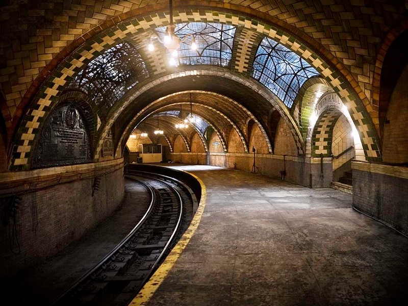 Station de métro Old City Hall La station de métro de l'hôtel de ville (Old City Hall), aujourd'hui abandonnée, était le terminus sud original de la première ligne de métro de la ville. Située sous le City Hall à Manhattan, elle a ouvert en 1904. Avec ses plafonds voûtés, ses grandes fenêtres en verre, ses murs pavés et ses lustres élégants, elle a été conçue pour être un espace public majestueux. Mais compte-tenu de sa longueur, et de la courbe prononcée de sa plateforme, elle est rapidement devenue incompatible avec les nouveaux wagons, plus longs que ceux d'origine. La station fut fermée définitivement le 31 décembre 1945. Pour pouvoir l'admirer, il faut être membre du New York Transit Museum, un musée peu connu dédié à l'histoire de la construction des lignes de métro. Cela permet de pouvoir acheter des billets pour la visite guidée de la station, dont les rares tickets sont mis en vente 3 fois par an (plus de renseignements sur https://www.nytransitmuseum.org/old-city-hall en anglais). Situé au 99 Schermerhorn Street, à Brooklyn, dans une ancienne station de métro désaffectée, on peut y admirer entre autres quelques anciennes voitures de métro. L'autre possibilité (mais ce n'est pas autorisé) est de rester dans la rame de la ligne 6 pendant qu'elle fait une boucle autour du terminal pour changer de sens. Le 1er janvier 2026, c'est cette station que le nouveau maire de New York, Zohran Mamdani, a choisi comme décor pour prêter serment. Cliquer sur l'image pour l'agrandir. |