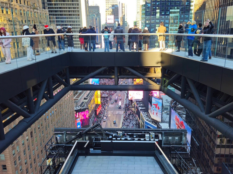 One Times Square et sa nouvelle plateforme d'observation Au croisement de la 42ème rue et de Broadway, le One Times Square (également connu sous le nom de New York Times Building) est un gratte-ciel de 25 étages construit en 1904, qui abrita jusqu'en 1913 les bureaux du journal The New York Times. L'origine du nom de Times Square vient également du périodique. C'est à partir des années 1960 que la façade du monument a commencé à être utilisée comme support publicitaire. En premier, un bandeau électronique indiquait des résumés de l'actualité. Puis petit à petit, des écrans géants ont été installés pour y afficher des publicités. Jusqu'ici, le bâtiment était inaccessible au public. Mais après plusieurs années de travaux et un vaste projet de transformation, One Times Square est maintenant une véritable attraction touristique, avec notamment l'ouverture, depuis le 17 décembre 2025, de sa plateforme d'observation extérieure photo (la 6ème de New York) avec des vitres tout autour permettant d'avoir une vue panoramique sur Times Square photo. Perchée au 19ème étage, à 111 mètres, elle est accessible par un ascenseur, entièrement vitré lui aussi. Le coût de la visite est de $30 (tarif 2026), quel que soit l'horaire choisi. Plus chère ($100 par personne), The New Year's Eve Ball Experiences ajoute une montée au 25ème étage (en petit groupe et accompagnés d'un guide) afin de s'approcher et de comprendre le fonctionnement de la célèbre Times Square Ball photo qui descend le long d'un mât à partir de 23h59 le soir de la Saint-Sylvestre pour se poser à minuit pile. Celle-ci existe depuis 1907, et les 600 ampoules (rouges, vertes, blanches et bleues) de la boule d'origine ont été remplacées pour le 100ème anniversaire par près de 10.000 leds permettant d'afficher 16 millions de couleurs et des vidéos. L'année 2026 verra également s'ouvrir un musée, Times Travel qui proposera une immersion dans l'histoire de Times Square, de ses origines à aujourd'hui, et comprendre comment cette place est devenue un véritable symbole. A travers des expériences interactives, vous pourrez en apprendre plus sur la construction du building et son évolution jusqu'à aujourd'hui, avant d'accéder à l'observatoire panoramique. Est également prévu iCandy NYC, qui vous permettra de construire votre building préféré en bonbons et de vivre d'autres expériences plus délirantes les unes que les autres (et bien sûr d'acheter toutes sortes de sucreries). Enfin, pour les plus fortunés et/ou romantiques, il est possible de sa demande de mariage, se marier ou renouveler ses vœux sur une terrasse privative (à partir de $500). Site officiel : https://onetimessquare.com (achats de tickets pour les différentes expériences, réservation de terrasse). Cliquer sur l'image pour l'agrandir. |