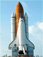 Les éléments de la navette spatiale La navette spatiale est composée de : - l'orbiter : c'est la partie qui va en orbite. Elle mesure 37,24 m de long, 23,79 m d'envergure, 17,25 m de haut, et pèse 75 tonnes à vide. Sa soute de 18,3 m de long et 4,6 m de large peut transporter jusqu'à 30 tonnes. - le réservoir (en orange), équipé d'un paratonnerre (les orages sont nombreux en Floride), qui mesure 47 m de haut, 8,4 m de diamètre et pèse 40 tonnes à vide. Il permet d'emporter 102,6 tonnes d'oxygène liquide à -180 degrés et 616,5 tonnes d'hydrogène liquide à -220 degrés (la liquéfaction permettant de diminuer le volume) - les 2 boosters (en blanc sur la photo), de 45 m de haut pour 3,7 m de diamètre, pesant 83 tonnes chacun, et emportant 503,6 tonnes de poudre chacun. Sous la coiffe des 2 réservoirs se trouve un parachute permettant leur récupération. Au départ ce devait être un lanceur récupérable. Mais les coûts exorbitants obligèrent les responsables à le transformer en un lanceur semi-récupérable. Seuls l'Orbiter et les boosters sont récupérés, le gros réservoir central ne l'est pas. Cliquer sur l'image pour voir plus de détails. |
