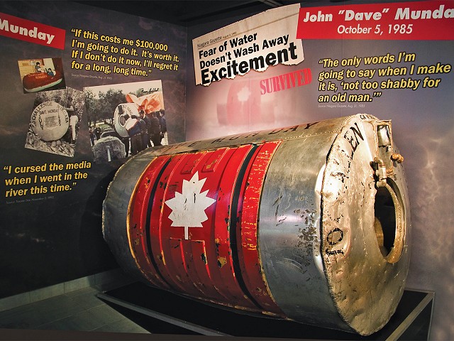 Niagara IMAX Theatre Ce cinéma sur écran géant d'une hauteur de six étages vous propose de découvrir avec un film de 37 minutes ces casse-cous qui ont défié les chutes du Niagara en les descendant à l'intérieur d'un tonneau, ou en les traversant en équilibre sur un filin (voir ci-dessous : "ces inconscients qui ont bravé les chutes") avec à la clé une issue bien souvent fatale. Certaines séances sont en français. Vous pourrez également voir dans le hall l'exposition Niagara Daredevil Exhibit et toucher les véritables tonneaux photo ayant servi à ces casse-cous pour descendre les chutes. Pour en savoir plus : http://www.imaxniagara.com (en anglais). Cliquer sur l'image pour l'agrandir. |
