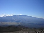 Mauna Kea Mauna Kea signifie "Montagne blanche" car ses flancs sont généralement enneigés en hiver (on peut y skier de décembre à avril). Datant d’environ 1 million d’années, c'est le plus haut volcan de l'archipel (4205 mètres). Selon le livre Guinness des Records, c'est même la plus haute montagne du monde (9700 mètres séparent le fond de l'océan, donc sa base, de son sommet), dépassant largement la hauteur du mont Everest qui ne fait en réalité que 3000 mètres de haut depuis sa base, car il est posé sur le plateau tibétain se trouvant déjà à une hauteur de 5000 mètres. C'est également un des rares endroits au monde où l'on peut passer du niveau de la mer à plus de 4200 mètres en de 2 heures. Le Mauna Kea a perdu plus de 1000 mètres en 500.000 ans, car il s'enfonce sous son propre poids. Il est à présent au repos (sa dernière éruption date de 4500 ans). Son isolement, son air pur avec un ciel dégagé en moyenne dix mois par an, et sa haute altitude font du sommet de cette montagne un site magnifique pour l'observation astronomique et les nombreux observatoires (financés par plusieurs pays, dont la France) abritent quelques-uns des télescopes photo les plus précis et les plus puissants du monde. Malgré des vents parfois violents, les conditions d'observation y sont comparables à celles des Andes. Une route monte jusqu'à un centre d'accueil, à 2810 mètres d’altitude. Ensuite, une piste de 15 kilomètres (non goudronnée) mène au sommet (si vous souhaitez vous y rendre, consulter en bas de page le paragraphe "Renseignements pratiques"). Cliquer sur l'image pour l'agrandir. |
