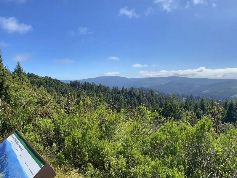 Redwood Creek Overlook Le bassin de Redwood Creek a été ajouté au parc en 1978, afin de protéger les séquoias situés sur les bords du ruisseau de la pollution causée par la déforestation en amont. Situé à environ 610 mètres d'altitude, Redwood Creek Overlook est un des plus beaux points de vue du parc. Ce belvédère domine une des plus grandes forêts de Redwoods encore existante, ainsi qu'une partie de la côte Pacifique, souvent couverte de brouillard. Ce brouillard favorise la croissance des séquoias, en permettant à la forêt de rester très humide (le brouillard se condense sur les aiguilles des arbres et s'écoule au sol), même en été ou les précipitations sont rares. Les Redwoods côtiers ne peuvent pas résister à la sécheresse et aux températures extrêmes (il arrive qu'en cas de sécheresse, le haut des séquoias meurt, sans que le reste de l'arbre ne dépérisse), ce qui explique qu'on les trouve dans une bande côtière large de 2 à 4 kilomètres, où ils profitent d'un climat tempéré (il gèle rarement) et de l'humidité apportée par l'océan Pacifique (les précipitations annuelles varient en fonction de l'emplacement entre 63 et 310 centimètres). Entre 300 et 500 mètres d'altitude, la forêt est composée de séquoias et de pins Douglas. De nombreux films ont été tournés dans les forêts environnantes, comme "Star Wars Episode 6 - Le Retour du Jedi" en 1982 (pour les scènes se déroulant sur la lune forestière d'Endor), "Alerte" en 1994 et "Jurassic Park" en 1996. Le film "E.T. l'extra-terrestre" fut en partie tourné dans des forêts de séquoias proches de Crescent City, au nord du parc. Cliquer sur l'image pour l'agrandir. |