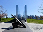 Liberty Park Inauguré en juin 2016, Liberty Park est un petit parc (4000m²) qui se trouve au sud du mémorial du 11 septembre 2001. Surélevé car situé sur le toit du Vehicular Security Center (le garage du World Trade Center), il offre un point de vue imprenable sur le site. Depuis août 2017, Liberty Park accueille The Sphere (à droite sur la photo), une sculpture haute de 7,62 mètres, réalisée par l'allemand Fritz Koenig, qui trônait depuis 1973 au pied des tours jumelles du World Trade Center. Extirpée des décombres, elle fut très abîmée par l'effondrement des tours, mais pas détruite. Elle était installée depuis mai 2002 dans Battery Park, où elle faisait office de monument commémoratif en hommage aux victimes. En 2012, il fut envisagé de l'enlever pour permettre la rénovation de Battery Park, mais elle fut sauvée grâce à une pétition. On aperçoit ` gauche sur la photo l'église orthodoxe St. Nicholas, reconstruction (mais pas à l'identique) après avoir été elle aussi détruite lors de l'effondrement des tours. Comme pour l'Oculus (voir ci-dessus), c'est architecte espagnol Calatrava qui a dessiné ce nouveau projet. Cliquer sur l'image pour l'agrandir. |