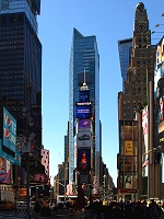 Musée Madame Tussauds Depuis novembre 2000, le musée Madame Tussauds, situé sur la 42ème Rue (à droite sur la photo) présente des personnalités célèbres sous forme de statues de cire. Vous pouvez ainsi vous faire photographier à côté de Brad Pitt, Gandhi, Marylin Monroe ou encore John F. Kennedy. Site officiel : http://www.madametussauds.com/NewYork/. Cliquer sur l'image pour l'agrandir. |