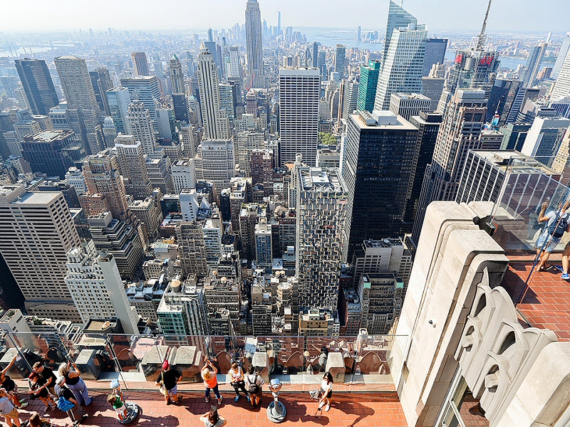 Rockefeller Center Le Rockefeller Center est un complexe de 19 bâtiments situé en plein cœur de Manhattan, entre la 5ème Avenue et l'Avenue des Amériques (au niveau de la 50ème Rue). Il a été construit à l'initiative du milliardaire John D. Rockefeller. A l'origine, le centre devait être une véritable petite "ville dans la ville". Mais le krach boursier de 1929 a amené les investisseurs à revoir leurs ambitions. Le complexe fut moins grandiose que prévu, comportant 14 bâtiments au départ. Les autres furent ajoutés par la suite. On y trouve des galeries commerciales souterraines avec des boutiques de luxe, des bureaux, une salle de spectacles (le Radio City Music Hall) qui accueille de grandes stars de la musique, les studios NBC, ... Souvent présent dans les séries ou films, le Rockefeller Center s'illumine pendant la période de Noël, avec un sapin immense installé sur son esplanade. Plus de 65.000 personnes travaillent au Rockefeller Center et des milliers de visiteurs s'y rendent chaque semaine pour voir les jardins, la Rockefeller Plaza (transformée en patinoire photo tous les hivers depuis 1936), ou encore la terrasse de l'observatoire Top Of The Rock photo (au 70ème étage, à 260 mètres de haut) d'où l'on a une vue panoramique à 360 dégrés sur Manhattan, et notamment les nouvelles tours "allumettes" le long de Central Park. Comptez de $40 et $61 selon l'heure (tarif 2024) pour y monter. Et en vue d'attirer plus de monde sur son toit, deux nouvelles attractions ont été installées : The Beam photo deux poutres sur lesquelles 7 personnes peuvent asseoir (attachées à l'aide d'une ceinture de sécurité) et qui montent à 3,5 mètres en vue de recréer la photo mythique de 1932 "Lunch Atop a Skyscraper" ("Déjeuner au sommet d'un gratte-ciel"). Compter $25 en plus pour cette activité (que vous pouvez même privatiser moyennant finances) qui a ouvert le 1er décembre 2023 ; et la toute dernière (ouverte le 1er octobre 2024), Skylift photo, une plateforme tournante en verre à ciel ouvert, qui s'élève de 3 étages au-dessus de la plateforme d'observation. Compter $35 en plus, pour cette activité. Site officiel : http://www.rockefellercenter.com (en anglais). Cliquer sur l'image pour l'agrandir. |