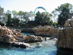 Believe Ce spectacle permet de découvrir l'attraction principale du parc : les orques. Plusieurs d'entre elles évoluent dans un bassin de plus de 26 millions de litres : le Shamu Stadium (capacité : 5600 places). Shamu était le nom de la première orque du parc SeaWorld de San Diego, dans les années 1960. Après sa mort en 1971, le nom de Shamu a continué à être utilisé dans les spectacles présentant des orques (il y en a une vingtaine dans les 3 parcs de la chaine). Believe est un des spectacles les plus applaudis de SeaWorld, et c'est l'occasion d'en apprendre un peu plus sur ces animaux aussi splendides qu'agiles et dangereux (en février 2010, le parc fut endeuillé par la mort d'une dresseuse, Dawn Brancheau, attaquée par une orque au sein du delphinarium). Les orques effectuent les chorégraphies indiquées par leurs dresseurs (sauts photo, pause pour la photo au bord du bassin, ...), et s'en donnent à cœur joie lorsqu'il s'agit d'éclabousser les spectateurs photo présents dans les premiers rangs. Le spectacle est très dynamique, et on sent une grande complicité entre l'animal et son soigneur. Cliquer sur l'image pour l'agrandir. |