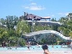 Castaway Creek Castaway Creek est une rivière au débit calme de 640 mètres de long qui encercle le lagon et permet de se détendre sur des bouées en passant au travers de petites chutes d'eau et écrans de buée. De nombreux ponts l'enjambent et permettent d'accéder aux différentes parties du parc. Elle longe Ketchakiddee Creek, une zone de jeux pour les plus jeunes avec de petits toboggans et des fontaines, située à gauche du lagon. Cliquer sur l'image pour l'agrandir. |
