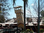 L'Afrique spoiler ! A partir de Discovery Island, le pont situé à gauche derrière l'Arbre de Vie amène à un village africain nommé Harambe, superbe reconstitution d'un village de pêcheur tanzanien. Les photos ramenées ont permis de bâtir le village africain presque à l'identique. L'illusion est parfaite. A peine construites, les maisons ont la patine et le délabrement que confèrent des décennies de climat tropical. Harambe est le point de départ des Kilimanjaro Safaris, l'attraction principale de ce "pays" (au sens Disney). C'est la plus grande attraction de Disney (d'une surface presque équivalente à celle du Magic Kingdom) et l'une des plus longues (40 minutes). On effectue le parcours dans une sorte d'énorme Jeep (ouverte sur les côtés) qui circule sur les pistes reconstituées au milieu d'une savane, avec ornières remplies d'eau (on n'oublie pas que l'on est sur d'anciens marécages), pont ayant tendance à s'affaisser au passage du véhicule et ... rencontre avec des braconniers au détour du chemin. De vrais animaux vivent en semi-liberté dans cette savane : éléphants, gazelles, gnous, lions, girafes, antilopes, zèbres, hippopotames, rhinocéros, crocodiles, singes, ... Le contact entre prédateurs et victimes est limité au maximum, les animaux étant séparés selon compatibilité d'entente sur de vastes espaces. Les animaux dangereux sont isolés par des fossés invisibles depuis le parcours. En bordure de la savane, un parcours pédestre appelé Pangani Forest Trail permet de voir de plus près certains des animaux des Kilimanjaro Safaris qui sont habitués à rester cachés. Il est ainsi possible de voir en plus des hippopotames, des oiseaux dans une large volière, des poissons africains et des gorilles. Cliquer sur l'image pour l'agrandir. |