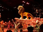 Camp Minnie-Mickey Cette partie fut construite afin de combler l'espace vide laissé pour des raisons budgétaires par ce qui aurait dû être un pays sur les animaux mythiques (d'où le dragon dans le logo du parc). Le décor de la zone évoque un camp de scouts dans une forêt de l'état de New York. Les enfants peuvent y rencontrer Mickey, Minnie, Donald et ses neveux en castors juniors. On y trouve un théâtre de 1375 places qui propose un spectacle musical de 28 minutes sur "Le Roi lion" (Festival of the Lion King) avec d'énormes décors et de jolis costumes. Cliquer sur l'image pour l'agrandir. |