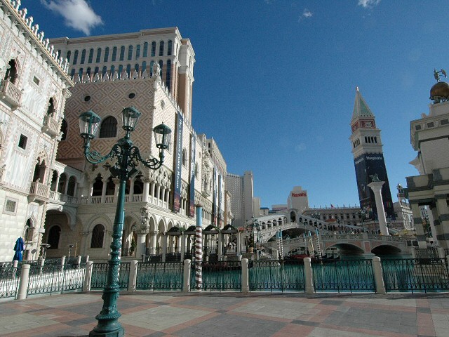 Hôtel Venetian - Palazzo Ouvert depuis mai 1999, le Venetian comptait à l'origine 3036 chambres avant un premier agrandissement de 1013 chambres qui avait porté le tout à 4049 chambres. En janvier 2008, un nouveau bâtiment de 50 étages et 3025 chambres (The Palazzo) a permis au complexe Venetian/Palazzo de devenir le plus grand hôtel du monde avec plus de 7000 chambres (soit plus que les 20 plus grands hôtels de Paris réunis) avant d'être dépassé en 2020 par le First World Hotel en Malaisie. L'hôtel comporte 5 piscines, 2 casinos, 16 restaurants, 2500 machines à sous et le plus grand centre des congrès des Etats-Unis. Un réseau de canaux permet aux visiteurs de parcourir à bord de gondoles le Grand Canal Shoppes photo, le centre commercial du Venetian (150 magasins). L'ensemble s'inspire de Venise photo, avec le Palais des Doges, le campanile de la basilique Saint-Marc, le pont des soupirs ou encore le pont Rialto (un des symboles romantiques de Venise). Les matériaux ont été importés d'Italie et plusieurs spécialistes de l'art italien ont participé à la reconstitution des décors. Les proportions des différents monuments ont été respectées. Le coût du projet : 9,5 milliards de francs, soit 3,5 fois le coût du stade de France ! Le Venetian remplace le Sands photo, un hôtel/casino mythique où se produisait Frank Sinatra. Les producteurs du film Les Ailes de l'Enfer ont profité de ce que l'hôtel allait être démoli pour faire se terminer l'atterrissage de l'avion dans le casino (en 1996). Le Venetian abrite un musée de cire (Madame Tussaud's Las Vegas), avec des reproductions célébrités du cinéma, de la musique ou du sport (Georges Clooney, Julia Roberts, Marilyn Monroe, Brad Pitt, ...) ainsi que le Guggenheim Museum Of Las Vegas, ouvert en octobre 2001, qui expose de nombreuses toiles de maîtres. Pour en savoir plus : http://www.venetian.com (en anglais). Cliquer sur l'image pour l'agrandir. |